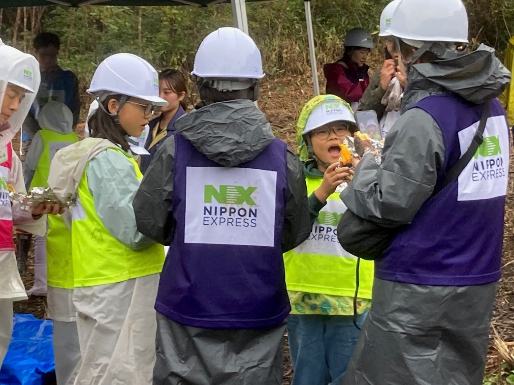 この日は、小雨が降りしきる中の活動となりましたが、クヌギ、モミジ、アオダモの苗木の植樹と獣害防止用保護カバーを設置していただきました。作業後に振舞った炭火でふっくら仕上げた焼き芋は、「冷えた身体が、芯から温まりました」と好評でした。わたしたちは、こうした企業の環境貢献活動を県・町とともにサポートし、町の活性化に貢献していきます。